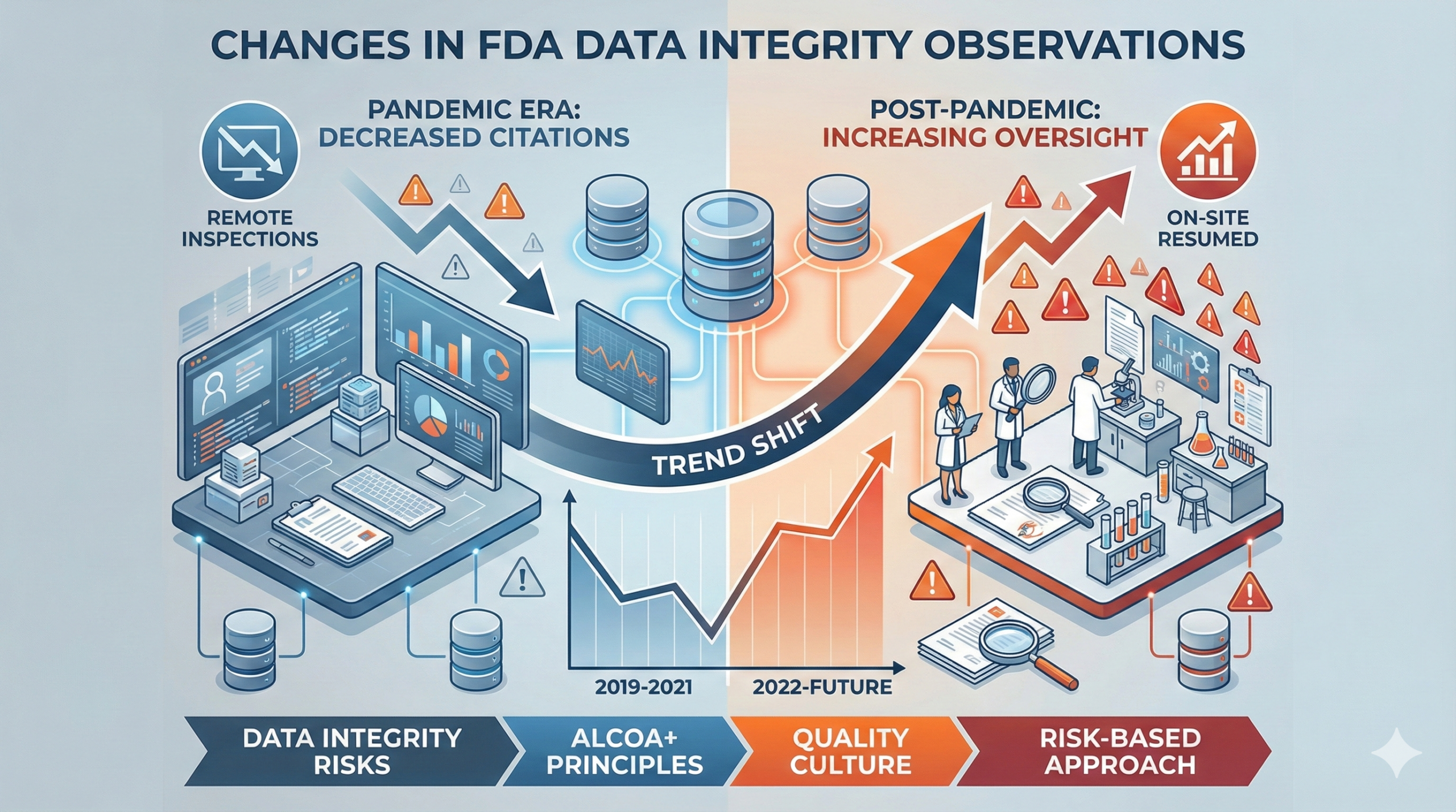 Following the pandemic, the FDA has steadily resumed on-site inspections while adopting a risk-based approach. Since 2023, FDA inspection activities have been approaching pre-pandemic levels, and data integrity observations are reportedly trending upward again. Companies are encouraged to proactively identify and correct issues that may have been overlooked during the remote inspection period.