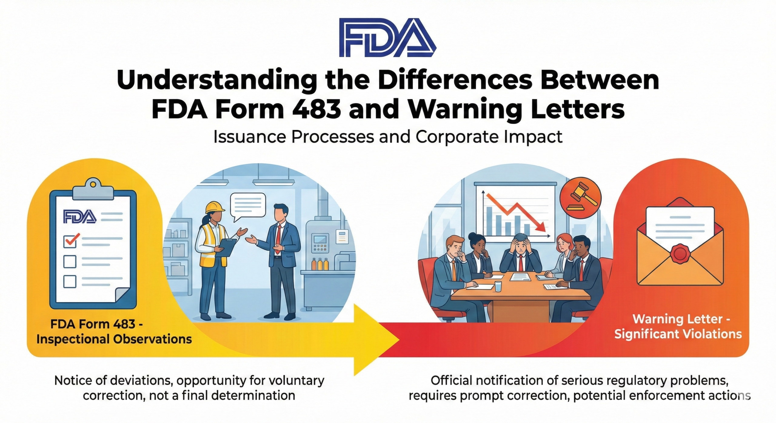 While both Form 483 and Warning Letters are critical communication tools in FDA inspections, their nature, procedures, and impacts differ substantially. Form 483 functions as a “warning signal” providing companies with the opportunity to address deficiencies before they escalate. In contrast, Warning Letters represent a “final warning” that can cause serious damage to operations and business reputation.