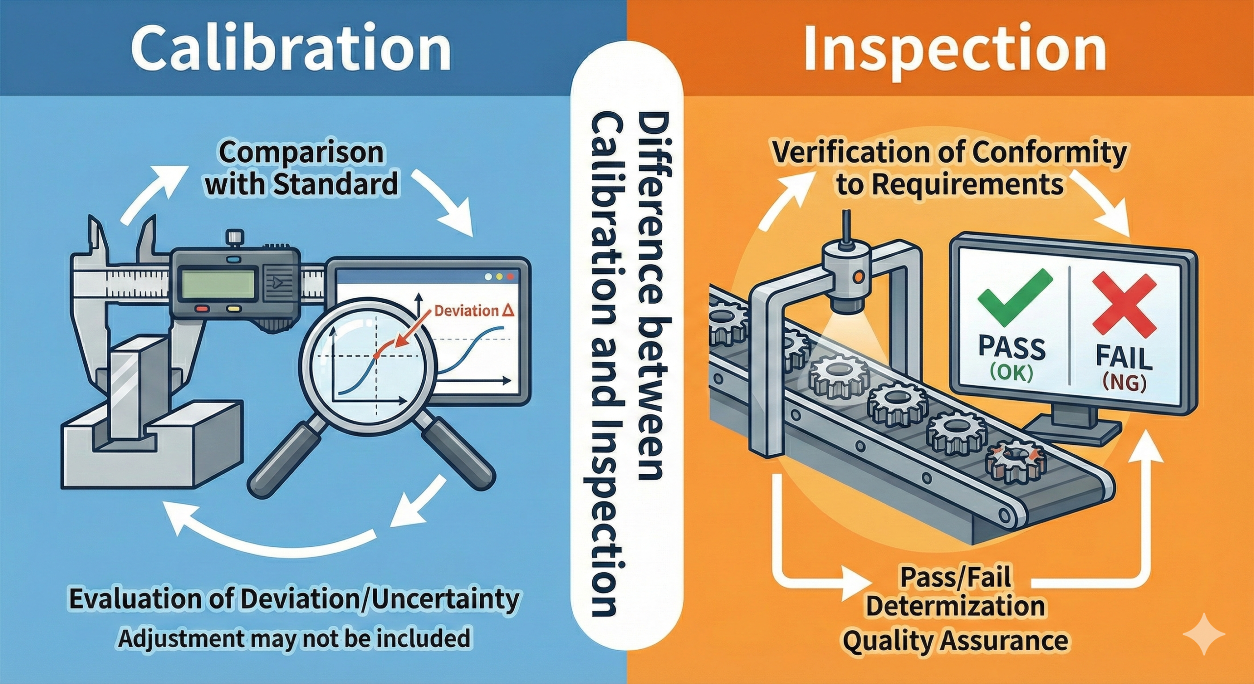When auditing pharmaceutical and medical device manufacturing facilities, the author has frequently observed cases where “calibration” and “inspection” are confused. Many companies’ SOPs (Standard Operating Procedures) state that “inspection can be replaced by calibration,” which is based on an incorrect understanding. Calibration and inspection are independent activities with different purposes and roles, and cannot substitute for each other. This article clarifies these differences and explains the importance of proper equipment management.