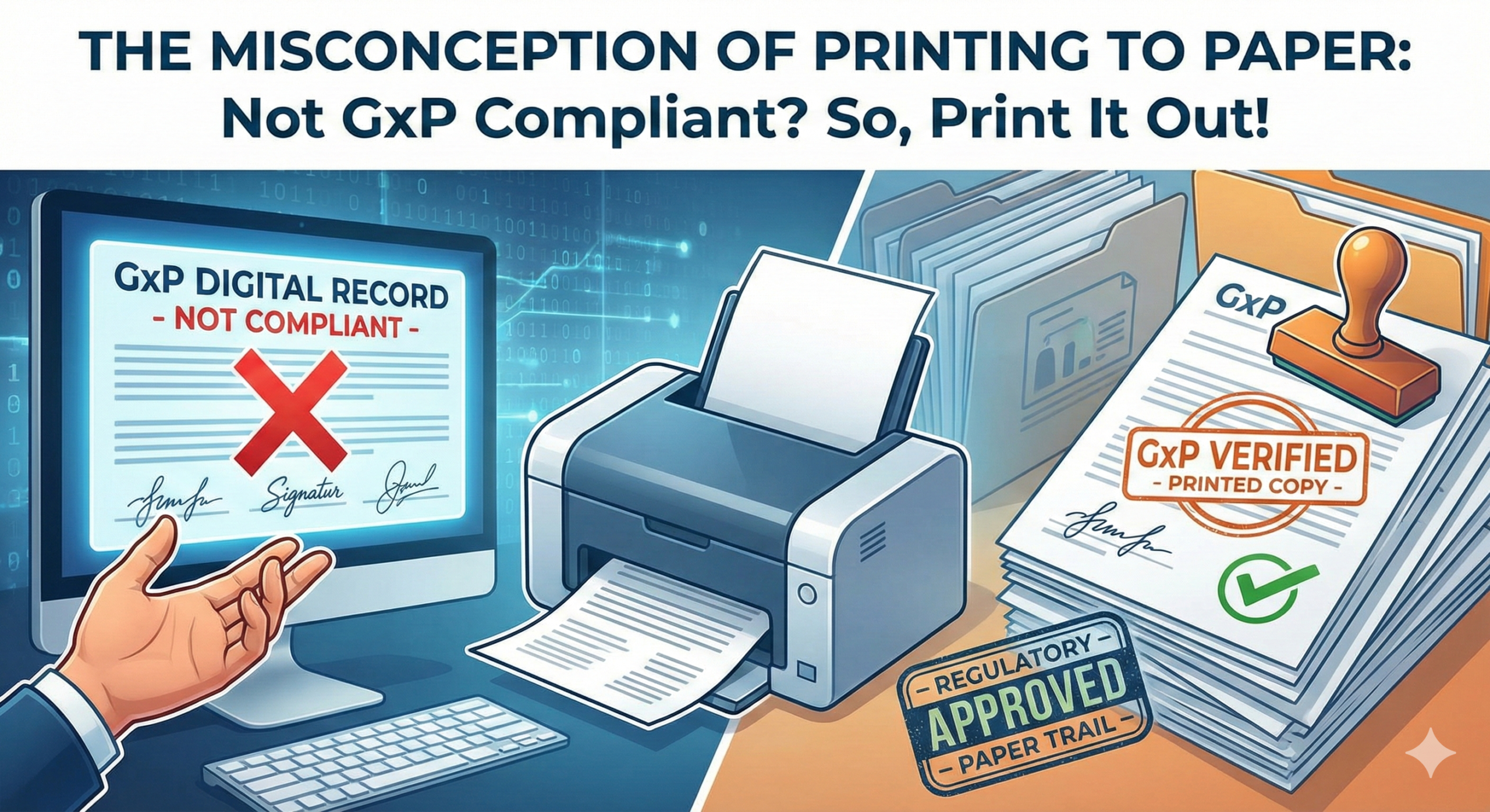 I frequently hear from companies: “Our system isn’t Part 11 compliant, so we print electronic records to paper and have them signed (or stamped).” This approach is fundamentally flawed—in fact, it’s counterproductive.